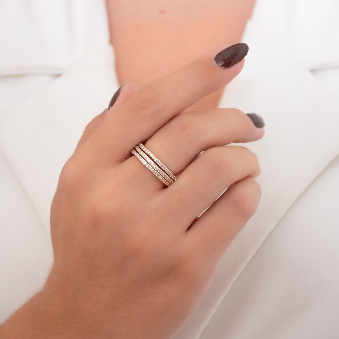 • Pode ser usado sozinho para um visual minimalista ou combinado com outros anéis para um efeito moderno.