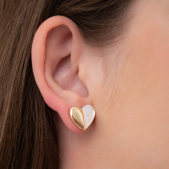 BRINCO CORAÇÃO METADE MADREPÉROLA - Sofisticação e Versatilidade em Uma Peça Atemporal