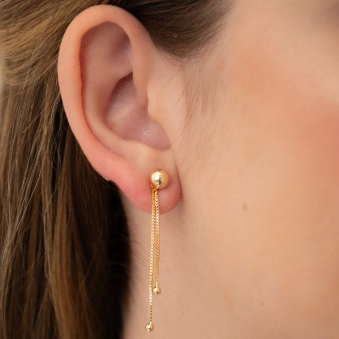 BRINCO DOURADO ESFERAS NA VENEZIANA 2 EM 1 - Sofisticação e Versatilidade em Uma Peça Atemporal