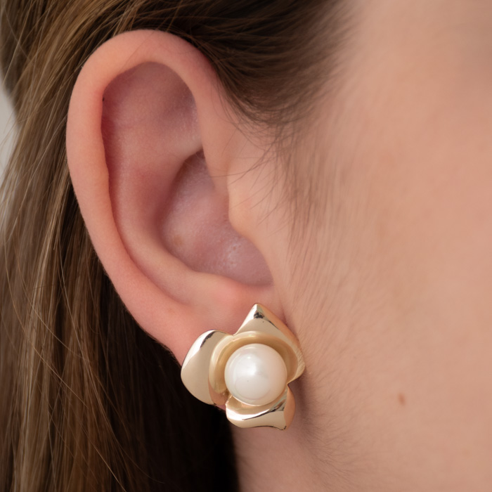 BRINCO FLOR TRÊS PÉTALAS MIOLO PÉROLA SHELL - Sofisticação e Versatilidade em Uma Peça Atemporal