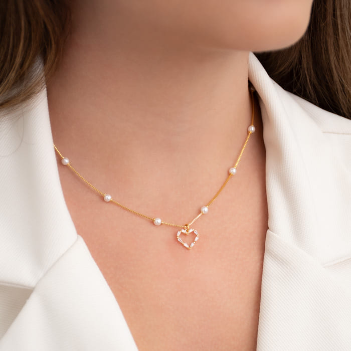 CHOKER CORAÇÃO \"BAGUETE\" VAZADO NA VENEZIANA COM PÉROLAS - O Toque de Sofisticação Que Transforma Seu Estilo