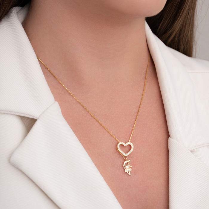 COLAR CORAÇÃO VAZADO CRAVEJADO E MENINA NA VENEZIANA - Sofisticação e Brilho para Todos os Momentos
