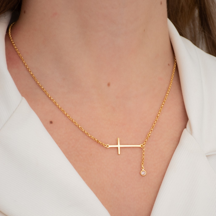 COLAR ELO PORTUGUÊS COM CRUZ E ZIRCÔNIA - Sofisticação e Brilho para Todos os Momentos