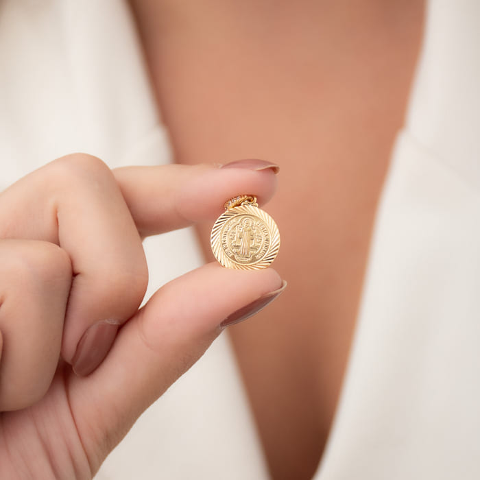 MEDALHA DE SÃO BENTO COM ARGOLINHA CRAVEJADA – Sofisticação e Versatilidade em Uma Peça Atemporal